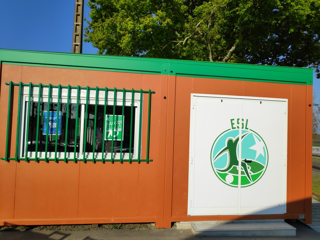 Le modulaire relooké “ESL” Posted on 11 avril 2019 by Christian GIRAUDEAU Habillage du modulaire du stade Marcel Bonneau pour l’embellir aux couleurs du club avant les tournois et les 70 ans du club !