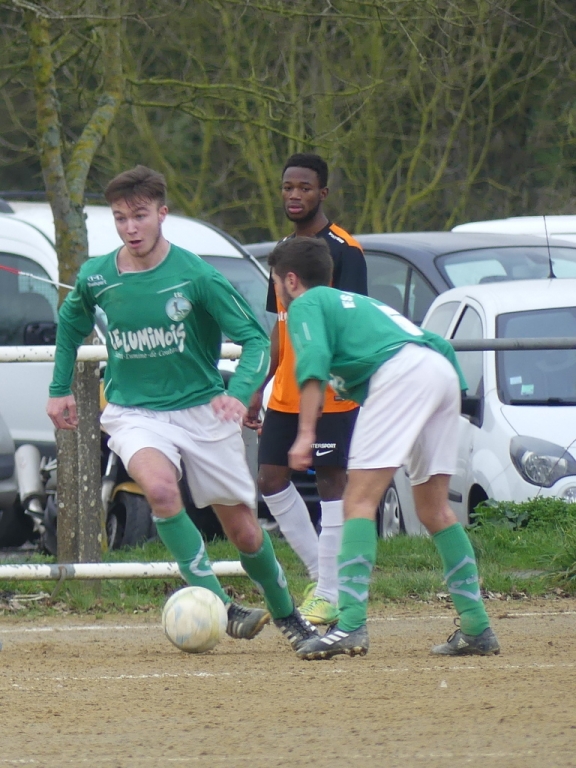 En récupérant la balle dans le camp adverse, ils se créent davantage d’occasions. Suite à une remise en touche, Julien (Huchet) va débloquer le compteur du match en réalisant un centre-tir qui va lober le gardien. Les occasions s’accumulent sur le but adverse et vont réaliser le break par le biais d’Arthur sur une passe en retrait de Romain. Mais en fin de première période, les verts vont baisser le pied sans grandes conséquences derrière. Mi-temps : 2 – 0.Guillaume Gravouil